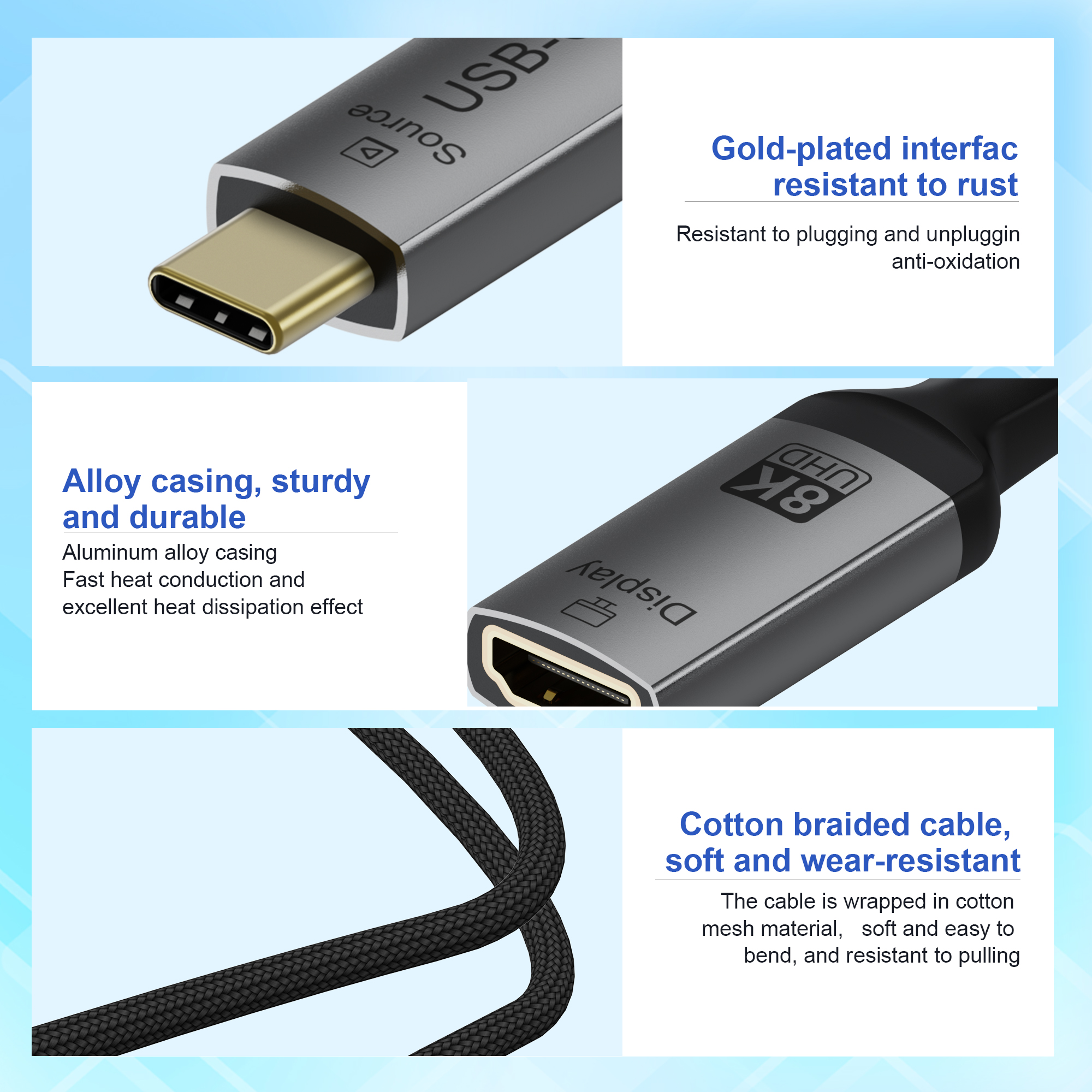 Material: Aluminum shell + Braided Jacket